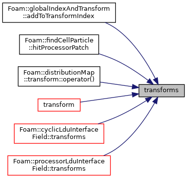 Referenced by globalIndexAndTransform::addToTransformIndex(), findCellParticle::hitProcessorPatch(), distributionMap::transform::operator()(), transformer::transform(), cyclicLduInterfaceField::transforms(), and processorLduInterfaceField::transforms().