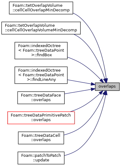 Referenced by tetOverlapVolume::cellCellOverlapMinDecomp(), tetOverlapVolume::cellCellOverlapVolumeMinDecomp(), indexedOctree< Foam::treeDataPoint >::findBox(), indexedOctree< Foam::treeDataPoint >::findLineAny(), treeDataFace::overlaps(), treeDataPrimitivePatch< PatchType >::overlaps(), treeDataCell::overlaps(), and patchToPatch::update().
