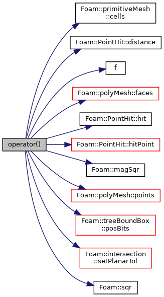 References primitiveMesh::cells(), PointHit< Point >::distance(), f(), polyMesh::faces(), forAll, intersection::halfRay, PointHit< Point >::hit(), PointHit< Point >::hitPoint(), Foam::magSqr(), polyMesh::points(), treeBoundBox::posBits(), intersection::setPlanarTol(), and Foam::sqr().