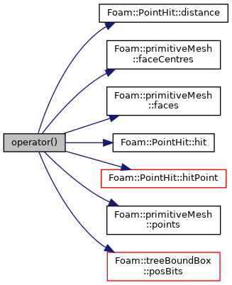References PointHit< Point >::distance(), primitiveMesh::faceCentres(), primitiveMesh::faces(), intersection::halfRay, PointHit< Point >::hit(), PointHit< Point >::hitPoint(), primitiveMesh::points(), and treeBoundBox::posBits().