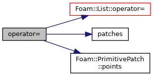 References List< T >::operator=(), triSurface::patches(), and PrimitivePatch< FaceList, PointField >::points().