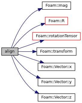 References Foam::mag(), Foam::R(), Foam::rotationTensor(), Foam::transform(), Vector< Cmpt >::x(), Vector< Cmpt >::y(), and Vector< Cmpt >::z().