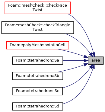 Referenced by Foam::meshCheck::checkFaceTwist(), Foam::meshCheck::checkTriangleTwist(), polyMesh::pointInCell(), tetrahedron< Point, PointRef >::Sa(), tetrahedron< Point, PointRef >::Sb(), tetrahedron< Point, PointRef >::Sc(), and tetrahedron< Point, PointRef >::Sd().