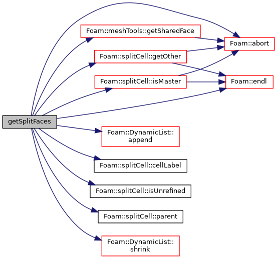 References Foam::abort(), DynamicList< T, SizeInc, SizeMult, SizeDiv >::append(), splitCell::cellLabel(), Foam::endl(), Foam::FatalError, FatalErrorInFunction, forAllConstIter, splitCell::getOther(), Foam::meshTools::getSharedFace(), splitCell::isMaster(), splitCell::isUnrefined(), mesh, splitCell::parent(), and DynamicList< T, SizeInc, SizeMult, SizeDiv >::shrink().