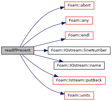 | bool | readIfPresent (const word &keyword, const dictionary &, Istream &is) |