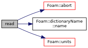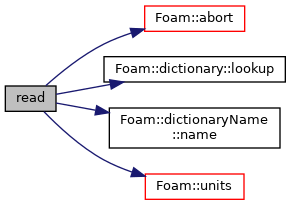 References Foam::abort(), dict, Foam::FatalIOError, FatalIOErrorInFunction, dictionary::lookup(), dictionaryName::name(), and Foam::units().