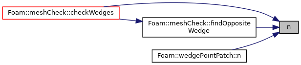 Referenced by Foam::meshCheck::checkWedges(), Foam::meshCheck::findOppositeWedge(), and wedgePointPatch::n().
