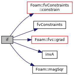 References fvConstraints::constrain(), fvConstraints(), Foam::fvc::grad(), invA(), K, Foam::magSqr(), p, U, and UEqn.
