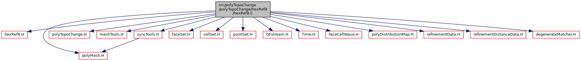 Include dependency graph for hexRef8.C: