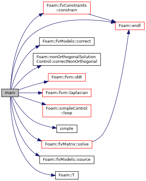 References fvConstraints::constrain(), fvModels::correct(), nonOrthogonalSolutionControl::correctNonOrthogonal(), Foam::fvm::ddt(), Foam::endl(), Foam::Info, Foam::fvm::laplacian(), simpleControl::loop(), mesh, Foam::nl, simple(), fvMatrix< Type >::solve(), fvModels::source(), and Foam::T().