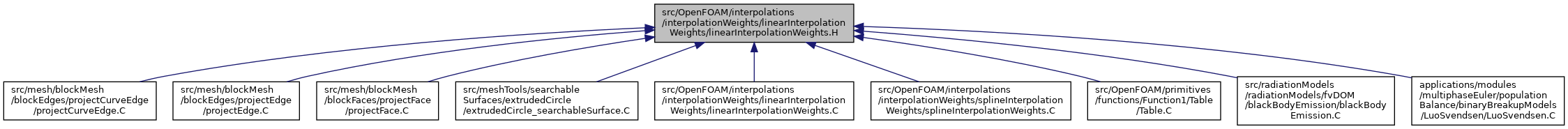 Include dependency graph for linearInterpolationWeights.H: