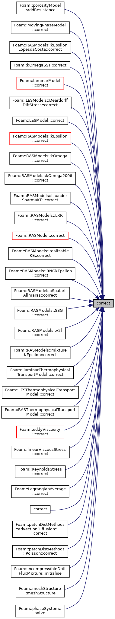 Referenced by porosityModel::addResistance(), MovingPhaseModel< BasePhaseModel >::correct(), kEpsilonLopesdaCosta< BasicMomentumTransportModel >::correct(), kOmegaSST< MomentumTransportModel, BasicMomentumTransportModel >::correct(), laminarModel< BasicMomentumTransportModel >::correct(), DeardorffDiffStress< BasicMomentumTransportModel >::correct(), LESModel< BasicMomentumTransportModel >::correct(), kEpsilon< BasicMomentumTransportModel >::correct(), kOmega< BasicMomentumTransportModel >::correct(), kOmega2006< BasicMomentumTransportModel >::correct(), LaunderSharmaKE< BasicMomentumTransportModel >::correct(), LRR< BasicMomentumTransportModel >::correct(), RASModel< BasicMomentumTransportModel >::correct(), realizableKE< BasicMomentumTransportModel >::correct(), RNGkEpsilon< BasicMomentumTransportModel >::correct(), SpalartAllmaras< BasicMomentumTransportModel >::correct(), SSG< BasicMomentumTransportModel >::correct(), v2f< BasicMomentumTransportModel >::correct(), mixtureKEpsilon< BasicMomentumTransportModel >::correct(), laminarThermophysicalTransportModel< BasicThermophysicalTransportModel >::correct(), LESThermophysicalTransportModel< BasicThermophysicalTransportModel >::correct(), RASThermophysicalTransportModel< BasicThermophysicalTransportModel >::correct(), eddyViscosity< BasicMomentumTransportModel >::correct(), linearViscousStress< BasicMomentumTransportModel >::correct(), ReynoldsStress< BasicMomentumTransportModel >::correct(), LagrangianAverage< Type >::correct(), correct(), advectionDiffusion::correct(), Poisson::correct(), incompressibleDriftFluxMixture::initialise(), meshStructure::meshStructure(), and phaseSystem::solve().