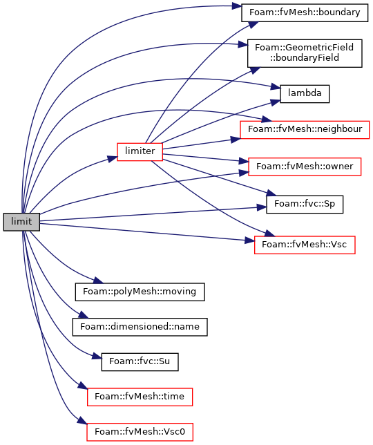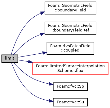 | void | limit (const control &controls, const RdeltaTType &rDeltaT, const RhoType &rho, const volScalarField &psi, const surfaceScalarField &phi, surfaceScalarField &psiPhi, const SpType &Sp, const SuType &Su, const PsiMaxType &psiMax, const PsiMinType &psiMin, const bool returnCorr) |