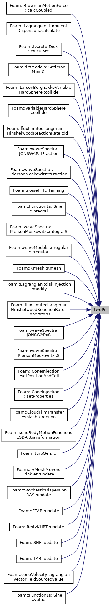 Referenced by LehrMilliesMewes::addToBinaryBreakupRate(), AdachiStuartFokkink::addToCoalescenceRate(), LehrMilliesMewesCoalescence::addToCoalescenceRate(), LiaoCoalescence::addToCoalescenceRate(), Luo::addToCoalescenceRate(), PrinceBlanch::addToCoalescenceRate(), cylindrical::Ak(), spherical::Ak(), polygonTriangulate::angle(), standardNormal::approxErf(), standardNormal::approxErfInv(), face::area(), face::areaAndCentre(), face::areaAndCentreStabilised(), MomentumParcel< ParcelType >::areaS(), face::average(), Foam::meshCheck::boundaryFaceSkewness(), ReactingMultiphaseParcel< ParcelType >::calc(), ReactingParcel< ParcelType >::calc(), targetCoeffTrim::calcCoeffs(), BrownianMotionForce< CloudType >::calcCoupled(), multiValveEngine::movingObject::calcScale(), COxidationDiffusionLimitedRate< CloudType >::calculate(), COxidationHurtMitchell< CloudType >::calculate(), COxidationIntrinsicRate< CloudType >::calculate(), COxidationKineticDiffusionLimitedRate< CloudType >::calculate(), COxidationMurphyShaddix< CloudType >::calculate(), cosine::calculate(), LiquidEvaporation< CloudType >::calculate(), LiquidEvaporationBoil< CloudType >::calculate(), aerosolDrag::CdRe(), MPLICface::Cf(), LegendreMagnaudet::Cl(), ORourkeCollision< CloudType >::collide(), ORourkeCollision< CloudType >::collideParcels(), BrunDripping::correct(), dripping::correct(), homogeneousCondensation::correct(), homogeneousLiquidPhaseSeparation::correct(), kineticTheoryModel::correct(), radiativeIntensityRay::correct(), spherical::correct(), cubic< Type >::correction(), pointLinear< Type >::correction(), triSurface::curvature(), propellerDisk::diskThickness(), populationBalanceModel::etaV(), triSurface::extractPointCloseness(), Foam::meshCheck::faceSkewness(), faceCorrectedSnGrad< Type >::fullGradCorrection(), cylinderHeadPoints::generate(), if(), Foam::incGammaRatio_Q(), FreeStream< CloudType >::inflow(), halfCosineRamp::integral(), surfaceInterpolationScheme< scalar >::interpolate(), JohnsonJackson::JohnsonJackson(), JohnsonJacksonSchaeffer::JohnsonJacksonSchaeffer(), AiryCoeffs::k(), Gidaspow::kappa(), HrenyaSinclair::kappa(), Syamlal::kappa(), Foam::kShellIntegration(), cosine::limiter(), Foam::makeUnitDegrees(), Foam::makeUnitRotations(), DSMCCloud< ParcelType >::maxwellianAverageSpeed(), homogeneousCondensation::nDot(), homogeneousLiquidPhaseSeparation::nDot(), polygonTriangulate::nIntersections(), Gidaspow::nu(), HrenyaSinclair::nu(), Syamlal::nu(), sixDoFRigidBodyMotion::omega(), equilibrium::oneByTau(), isotropic::oneByTau(), nonEquilibrium::oneByTau(), Foam::operator<<(), PairSpringSliderDashpot< CloudType >::overlapArea(), IATEsource::phi(), standardNormal::plotPDF(), BrownianCollisions::precompute(), ParticleErosion< CloudType >::preFace(), polygonTriangulate::randomPolygon(), timeControl::read(), molecule::readFields(), refinementSurfaces::refinementSurfaces(), Schaeffer::Schaeffer(), Kusters::setBreakupRate(), CloudFilmTransfer< CloudType >::setParcelProperties(), ConeInjection< CloudType >::setProperties(), DSMCParcel< ParcelType >::constantProperties::sigmaT(), LarsenBorgnakkeVariableHardSphere< CloudType >::sigmaTcR(), VariableHardSphere< CloudType >::sigmaTcR(), sixDoFRigidBodyMotionSolver::sixDoFRigidBodyMotionSolver(), CrankNicolson::solve(), Newmark::solve(), symplectic::solve(), nucleationSizeGroupFvScalarFieldSource::sourceValue(), CloudFilmTransfer< CloudType >::splashDirection(), CloudFilmTransfer< CloudType >::splashInteraction(), face::sweptVol(), oscillatingRotatingMotion::transformation(), SDA::transformation(), multiValveEngine::movingObject::transformPoints(), ReitzKHRT< CloudType >::update(), SHF< CloudType >::update(), BlobsSheetAtomisation< CloudType >::update(), LISAAtomisation< CloudType >::update(), JohnsonJacksonParticleSlipFvPatchVectorField::updateCoeffs(), JohnsonJacksonParticleThetaFvPatchScalarField::updateCoeffs(), greyDiffusiveRadiationMixedFvPatchScalarField::updateCoeffs(), wideBandDiffusiveRadiationMixedFvPatchScalarField::updateCoeffs(), ParkRogakSurfaceAreaVolumeRatioFvScalarFieldSource::value(), halfCosineRamp::value(), Foam::vertices(), MomentumParcel< ParcelType >::volume(), CloudFilmTransfer< CloudType >::wetSplashInteraction(), wideBandDiffusiveRadiationMixedFvPatchScalarField::wideBandDiffusiveRadiationMixedFvPatchScalarField(), regionSizeDistribution::write(), UniformTable< scalar >::write(), molecule::writeFields(), and PengRobinsonGas< Specie >::Z().