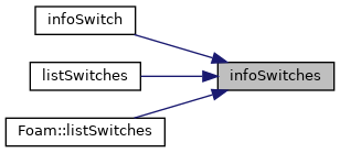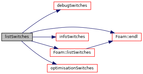 References debugSwitches(), Foam::endl(), Foam::Info, infoSwitches(), Foam::listSwitches(), and optimisationSwitches().