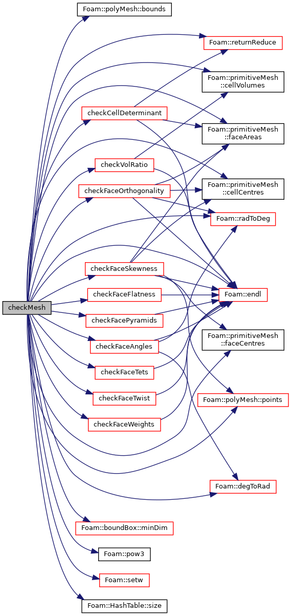 | bool | checkMesh (const bool report, const polyMesh &mesh, const dictionary &dict, labelHashSet &wrongFaces) |