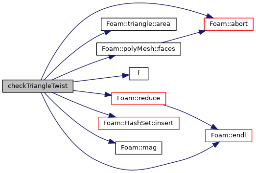 | bool | checkTriangleTwist (const bool report, const scalar minTwist, const polyMesh &, const vectorField &faceAreas, const vectorField &faceCentres, const pointField &p, const labelList &checkFaces, labelHashSet *setPtr) |