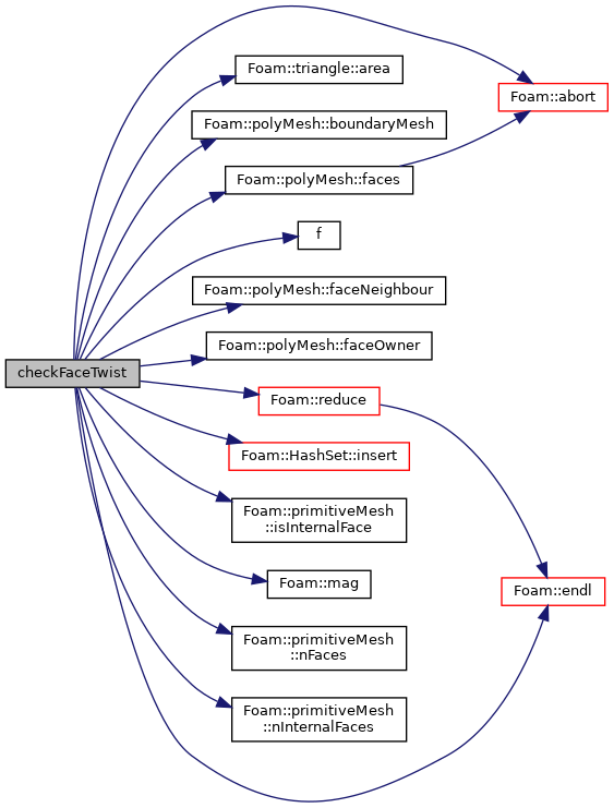 | bool | checkFaceTwist (const bool report, const scalar minTwist, const polyMesh &, const vectorField &cellCentres, const vectorField &faceAreas, const vectorField &faceCentres, const pointField &p, const labelList &checkFaces, labelHashSet *setPtr) |