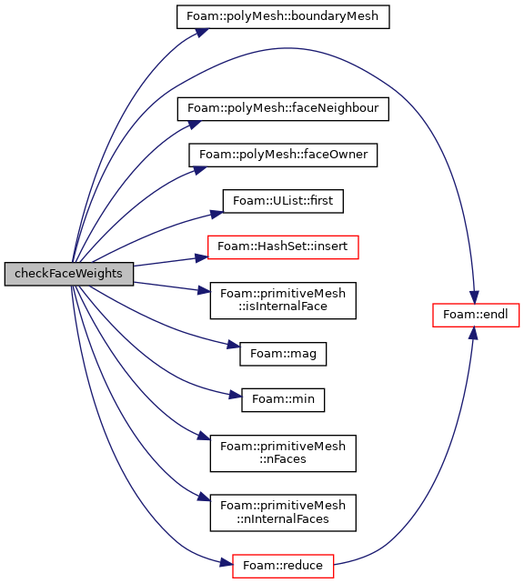 | bool | checkFaceWeights (const bool report, const scalar warnWeight, const polyMesh &mesh, const vectorField &cellCentres, const vectorField &faceCentres, const vectorField &faceAreas, const labelList &checkFaces, const List< labelPair > &baffles, labelHashSet *setPtr) |