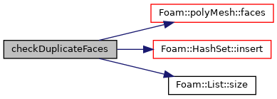 | bool | checkDuplicateFaces (const primitiveMesh &mesh, const label, const Map< label > &, label &nBaffleFaces, labelHashSet *) |