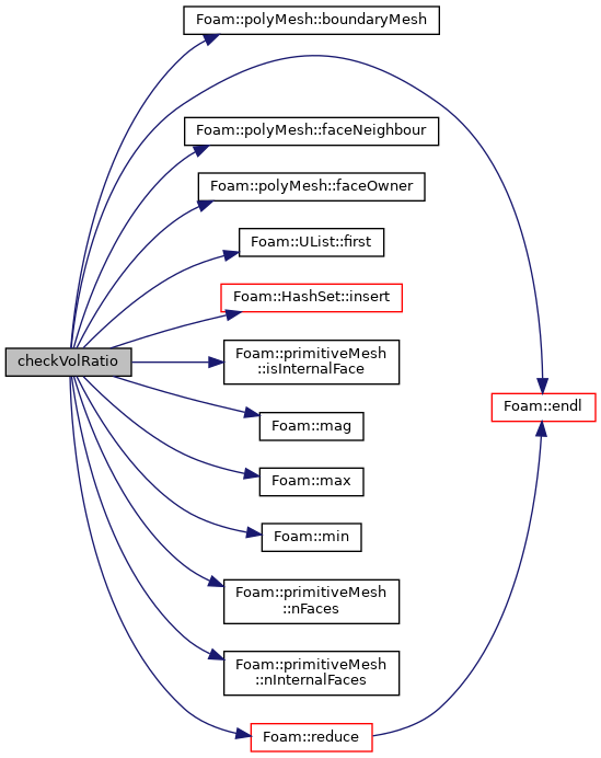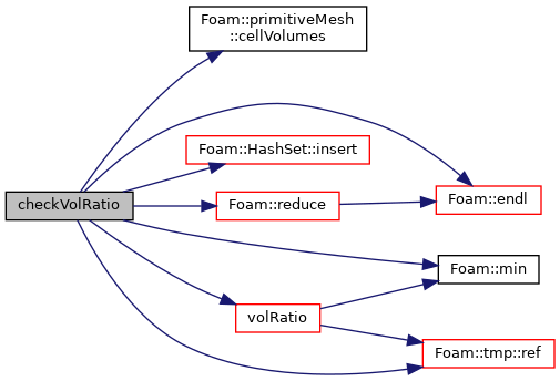 | bool | checkVolRatio (const polyMesh &mesh, const bool report, const scalar minRatio=0.01, labelHashSet *setPtr=nullptr) |