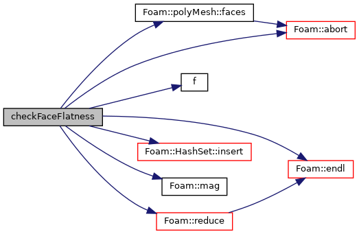 | bool | checkFaceFlatness (const bool report, const scalar minFlatness, const polyMesh &, const vectorField &faceAreas, const vectorField &faceCentres, const pointField &p, const labelList &checkFaces, labelHashSet *setPtr) |
