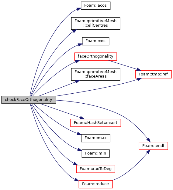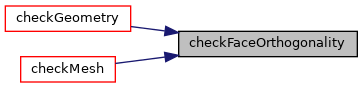 | bool | checkFaceOrthogonality (const bool report, const scalar orthWarn, const polyMesh &, const vectorField &cellCentres, const vectorField &faceAreas, const labelList &checkFaces, const List< labelPair > &baffles, labelHashSet *setPtr) |