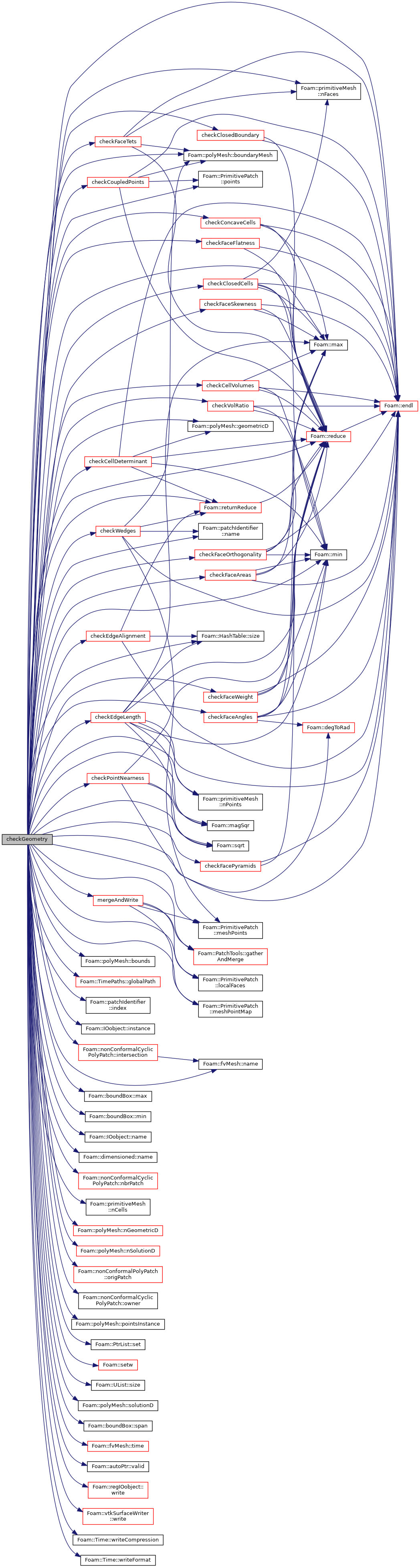| label | checkGeometry (const polyMesh &mesh, const bool allGeometry, const scalar nonOrthThreshold, const scalar skewThreshold, const autoPtr< surfaceWriter > &, const autoPtr< setWriter > &) |