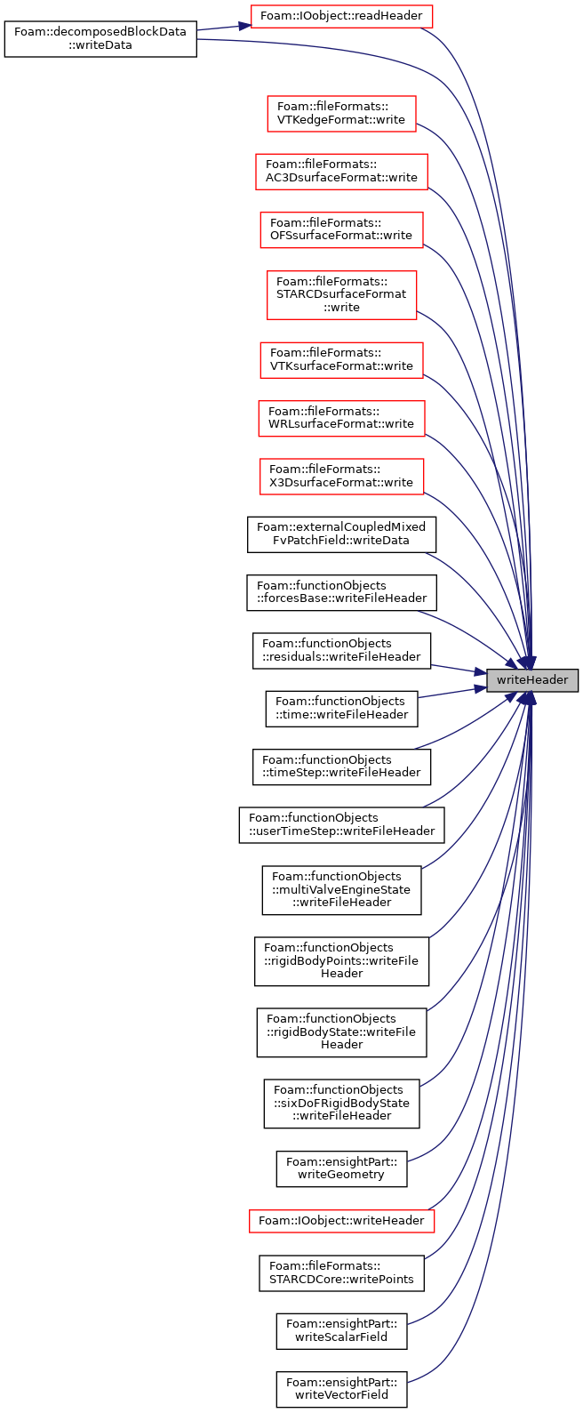 Referenced by IOobject::readHeader(), VTKedgeFormat::write(), AC3DsurfaceFormat< Face >::write(), OFSsurfaceFormat< Face >::write(), STARCDsurfaceFormat< Face >::write(), VTKsurfaceFormat< Face >::write(), WRLsurfaceFormat< Face >::write(), X3DsurfaceFormat< Face >::write(), externalCoupledMixedFvPatchField< Type >::writeData(), decomposedBlockData::writeData(), forcesBase::writeFileHeader(), residuals::writeFileHeader(), time::writeFileHeader(), timeStep::writeFileHeader(), userTimeStep::writeFileHeader(), multiValveEngineState::writeFileHeader(), rigidBodyPoints::writeFileHeader(), rigidBodyState::writeFileHeader(), sixDoFRigidBodyState::writeFileHeader(), ensightPart::writeGeometry(), IOobject::writeHeader(), STARCDCore::writePoints(), ensightPart::writeScalarField(), and ensightPart::writeVectorField().