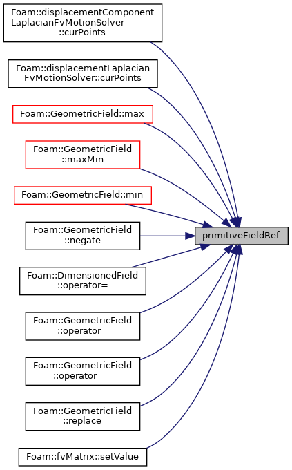 Referenced by displacementComponentLaplacianFvMotionSolver::curPoints(), displacementLaplacianFvMotionSolver::curPoints(), GeometricField< Type, GeoMesh, PrimitiveField >::max(), GeometricField< Type, GeoMesh, PrimitiveField >::maxMin(), GeometricField< Type, GeoMesh, PrimitiveField >::min(), GeometricField< Type, GeoMesh, PrimitiveField >::negate(), DimensionedField< Type, GeoMesh, PrimitiveField >::operator=(), GeometricField< Type, GeoMesh, PrimitiveField >::operator=(), GeometricField< Type, GeoMesh, PrimitiveField >::operator==(), GeometricField< Type, GeoMesh, PrimitiveField >::replace(), and fvMatrix< Type >::setValue().