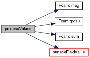 | scalar | processValues (const Field< scalar > &values, const vectorField &Sf, const scalarField &weightField) const |