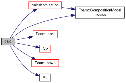 References SprayParcel< ParcelType >::calcAtomisation(), Foam::cbrt(), composition, Cp(), CompositionModel< CloudType >::liquids(), Foam::pow3(), rho, rho0, rho1, T, T0, X0(), and Y.