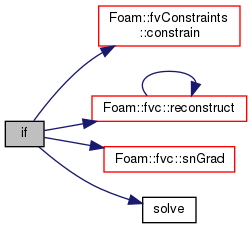 References fvConstraints::constrain(), fvConstraints, ghf, mesh, p_rgh, Foam::fvc::reconstruct(), rho, Foam::fvc::snGrad(), solve(), U, and UEqn.